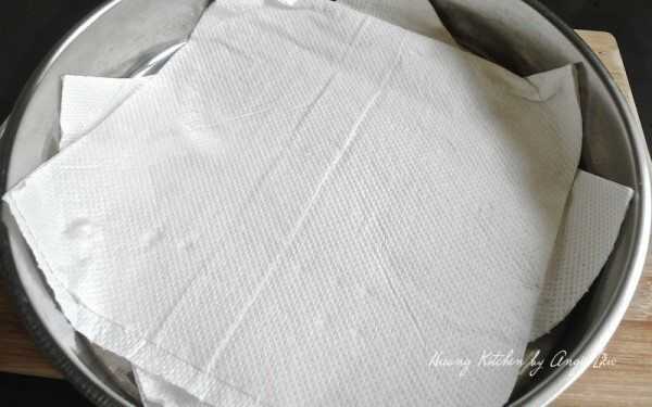En primer lugar, la línea un plato con toallas de papel. Esto es para drenar el exceso de aceite de las cáscaras de tee pastel frito por lo que no se aferran y absorba las cáscaras.