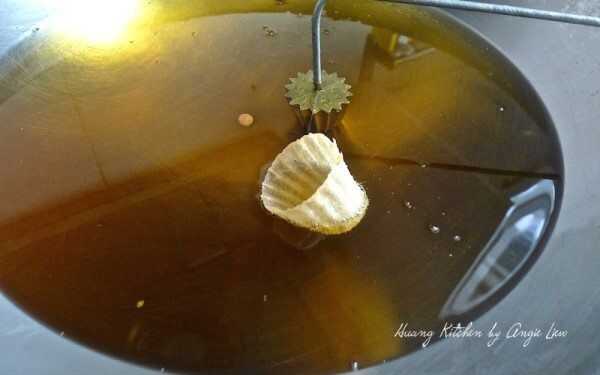 Una vez apagado el molde, freír en el aceite hasta que vuelve marrón dorado claro en color.