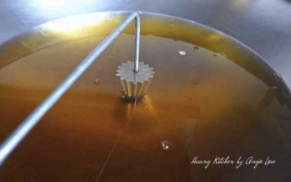 Con fuego medio, sumergir el molde en el aceite caliente hasta que esté apenas caliente (pero no demasiado caliente).