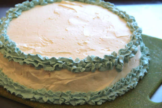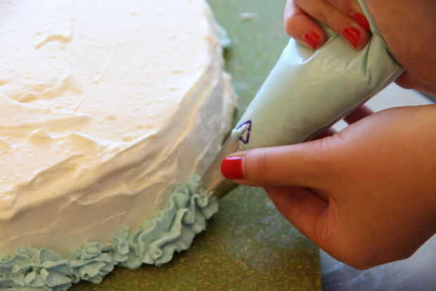 Si usted está haciendo una tarta casera de Carvel-esque, las heladas los bordes superior e inferior con nata azul. Crema batida estabilizada tiene su forma muy bien, así que si quieres hacer algo más ambicioso, siéntete libre!