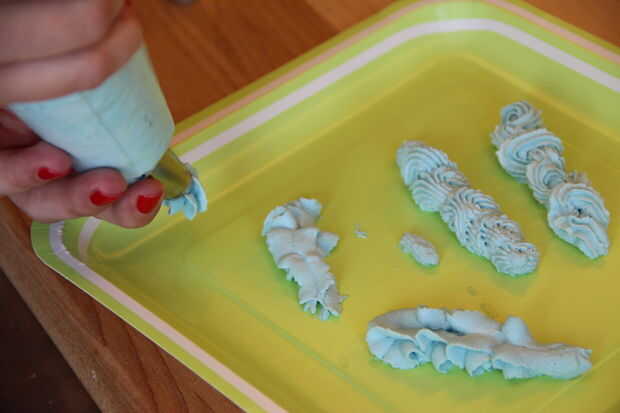 Sacar ese azul crema y usando una manga pastelera, probar las cosas y encontrar la punta derecha.