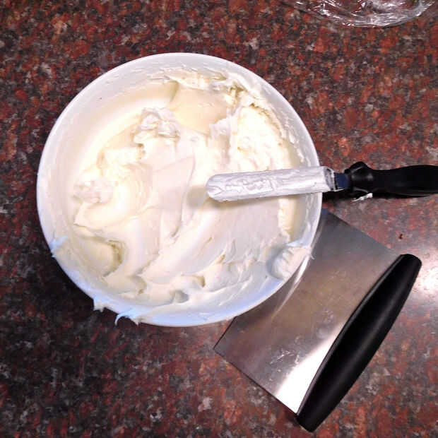 Una de las claves principales para hacer tortas de mirada grande es el 'cemento' sostiene los 'muros' - por así decirlo. Si tienes crema super suave fusión hacia abajo los lados de un pastel de fondant de su se va a ver horrible. Todos hemos visto las fotos de pasteles 'clavó' donde resultó menos apetitosos y bien feo.