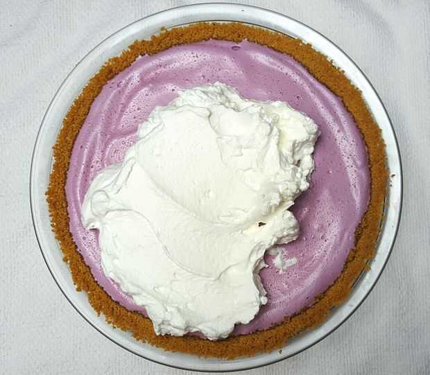 Esparcir uniformemente la crema batida sobre la tarta. Servir de inmediato.