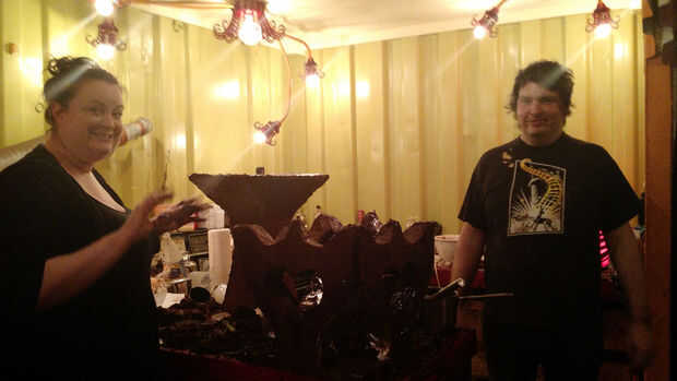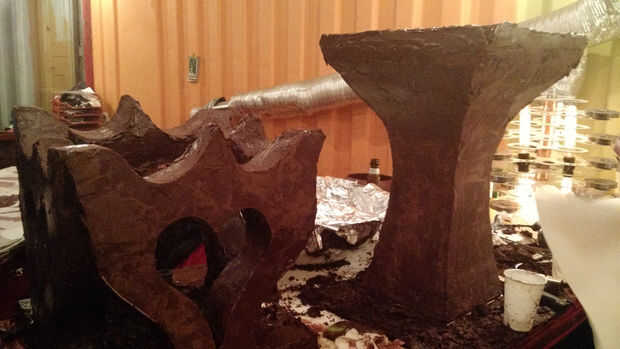 La ganache debe estar a una temperatura donde es pastosa y no demasiado líquida para que se pegue en el lugar y ser viable. Manteniendo su ganache difundir herramientas en agua caliente ayuda a que se les derriten el ganache como difundirlo y crear un liso bonito acabado (pero necesita secarlo con una toalla de papel antes de usar!). Hay un montón de buenos videos instructivos sobre cómo hacer ganache de bonita, me ayudaron bastante en el camino aunque mi técnica no es perfecta todavía!