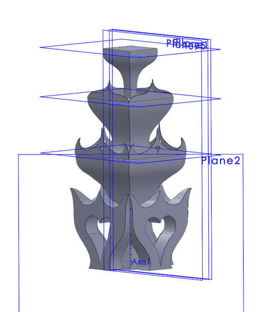 Comencé a crear algunos diseños en CAD 3d. Tardamos unas 3 iteraciones antes de establecerse en un diseño, pero tengo uno que me gustó. He podido conseguir fácilmente el volumen total de la forma del programa de CAD, y eso es lo que usé un tamaño de la torta. Una saludable porción tamaño del pastel es 10 pulgadas cúbicas de volumen, y tenía 300 personas, así que había retocado el diseño hasta que vino hacia fuera en cerca de 3000 pulgadas cúbicas.