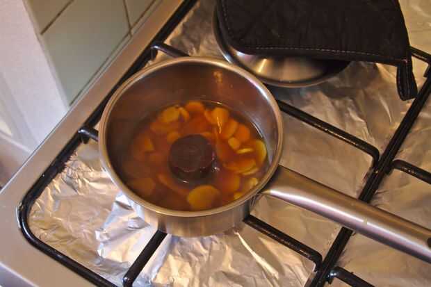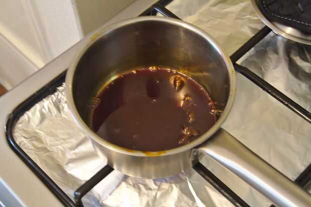 - Ponga la olla sobre un fuego bajo para reducir el líquido a un sirope. Seguir revolviendo y prestar mucha atención.