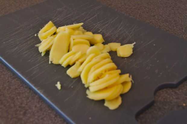 Raíces de jengibre de la madre de verdad necesita absolutamente fresco jengibre. Lo que sé, estos son muy dificiles de conseguir. Así que usted puede resolver esto comprando regularmente jengibre y cortar en rodajas finas en lugar de las habituales bolas. Corte perpendicular a la veta para hacerlos más fácil de comer.