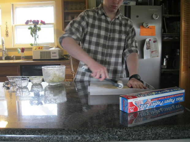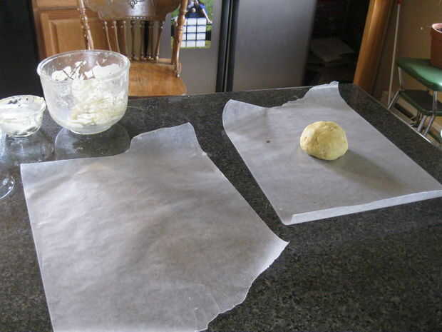 3. Colocar 1 bola en papel encerado y la parte superior con 2 pedazo de papel.