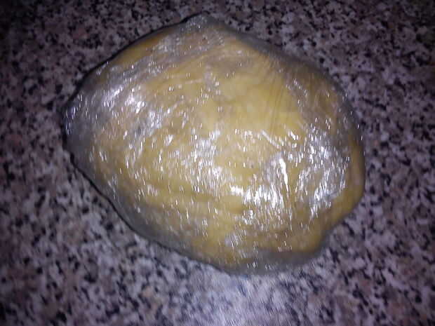 Envuelva la masa en flim transparente y coloque en la nevera durante al menos una hora antes de trabajar con él.