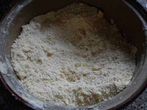 Añadir la mantequilla a temperatura ambiente y mezclar hasta que como pan rallado.