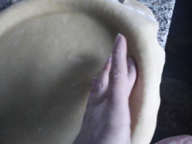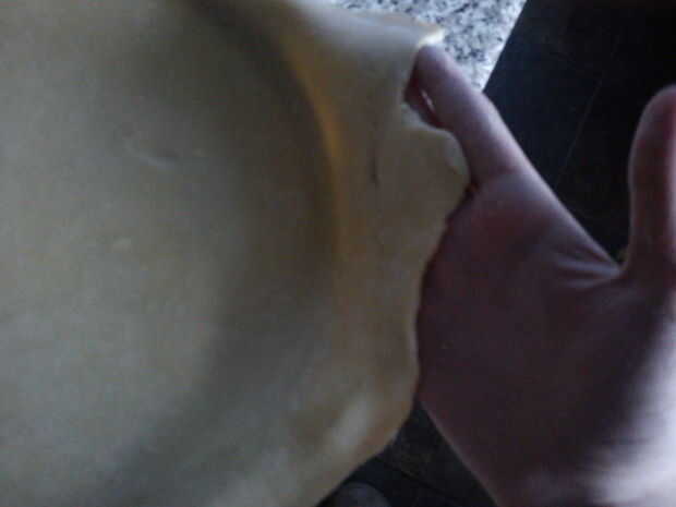 Cuelgue su pastel/tarta engrasado caja/lata, levantando los bordes y presionar la masa en los pliegues de la masa.