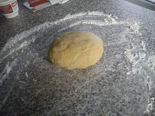 Ahora su rodillo de la harina y comenzar a rodar la masa hasta 1cm de espesor.