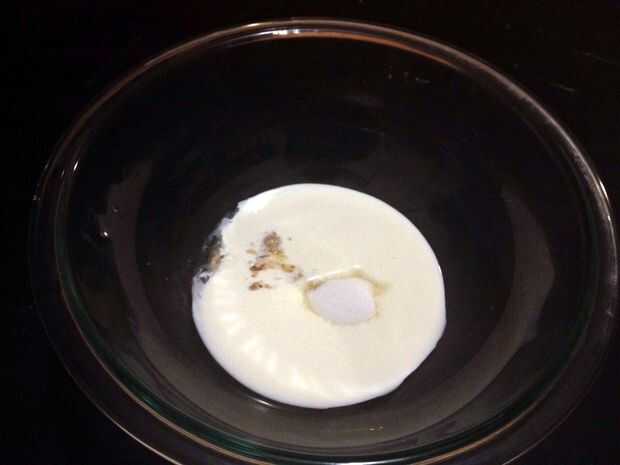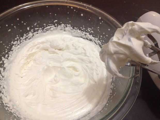 Verter crema de leche, vainilla extracto y azúcar en el bol frío, batir en velocidad media hasta que forma picos suaves.