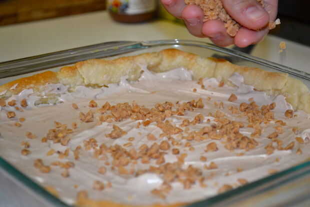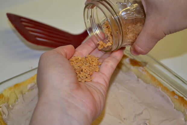 Una vez que ha colado en su totalidad, espolvorear sobre Toffee bits (tantas como desee).