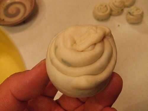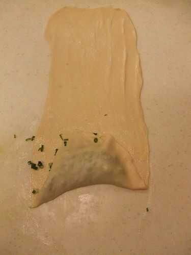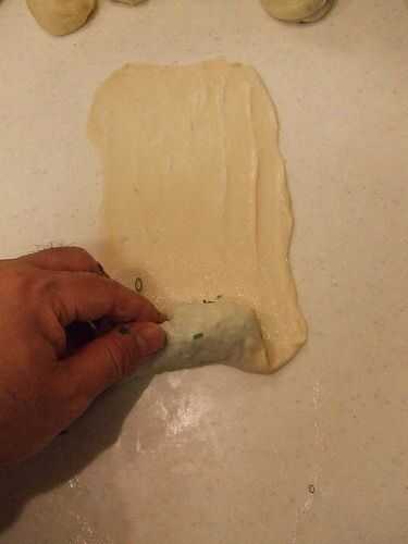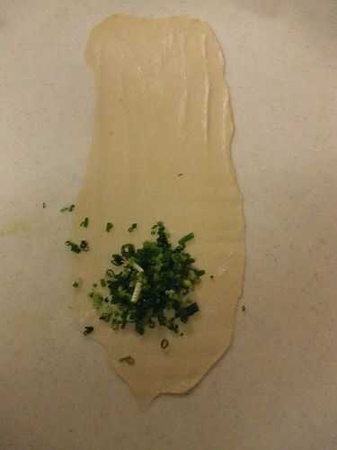 Enrolle un pedazo de masa dividido en forma ovalada y difundir una pizca de manteca en ella. pone un pellizco o un puñado de cebolla picada en el próximo lado y envolver con la masa bien, entonces el rodillo la masa con que se extiende en el exterior, forma en forma de palo de 20cm. Luego aplanarlo y rodillo para hacer una forma de bola.