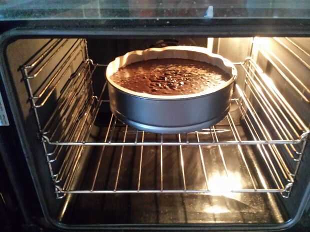 Poner la torta en el pre caliente el horno a 180C, 357F, gas marca 4.