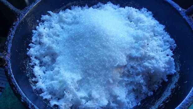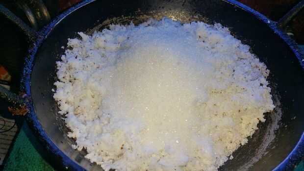 Sacar el coco suger blanco y añadiendo luego pone en una cacerola y cocinar hasta que se vuelvan marrones
