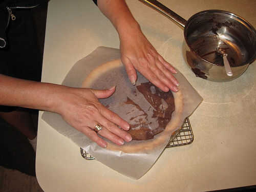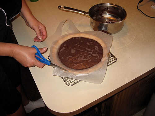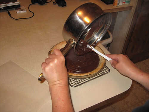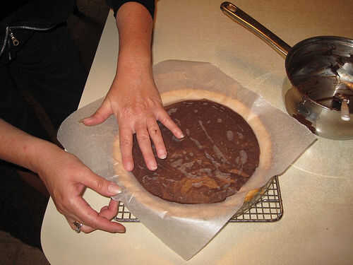 Aquí es donde el papel de cera pulg. necesita cubrir el relleno todo con papel de cera - lo contrario, crece una piel. ¿Suena grave, verdad? Es.