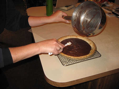 Vierta el relleno en la tarta completamente refrescado y alisar con una espátula.
