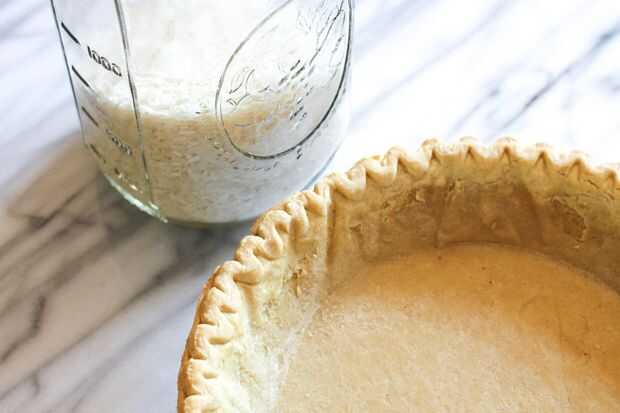 Coloque un pedazo de pergamino en la corteza y luego rellenarlo con arroz o frijoles viejos. Hornee durante la mitad del tiempo con las pesas en. Cuando la corteza comienza a obtener oro en los bordes, sabes que se encuentra! Entonces elimine los pergaminos y los pesos y durante el tiempo restante. (Usa el pergamino para verter los pesos en un frasco para su uso posterior! Reutilizar una y otra vez el mismo arroz)