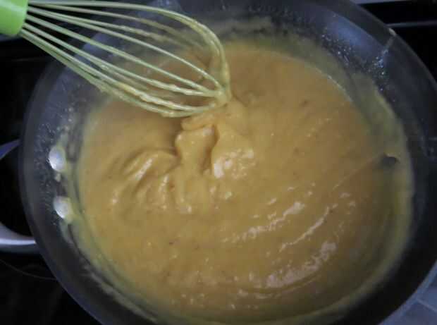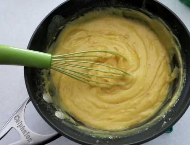 Cocinar a fuego medio, revolviendo con frecuencia en primero, entonces constantemente como mezcla comienza a espesar y comienza a cocinar a fuego lento, de 8 a 10 minutos. (Esto no es el momento para comenzar a jugar Candy Crush, a menos que usted disfrute de ponche de huevo revuelto.) Una vez que la mezcla de los simmers, continuar la cocción, revolviendo constantemente, durante 1 minuto más. (Cuando dicen revolver constantemente, que significan, muchas veces he leído comentarios en línea que su llenado nunca, si no es un pudín grueso cuando se terminen de cocinar, no será un pudín grueso cuando se come, mantenga revolviendo el minuto, la mezcla se espese y ser mucho más difícil obtener su bate a través de).