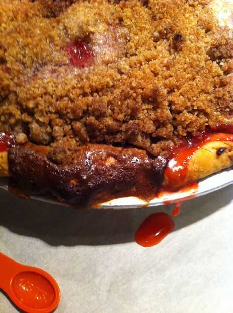 Cuando el horno ha precalentado hornear la tarta durante 30 minutos en 375 (190C) grados y 30 minutos aproximadamente a 350 (176C) hasta que los jugos comienzan a quedarse sin pastel.