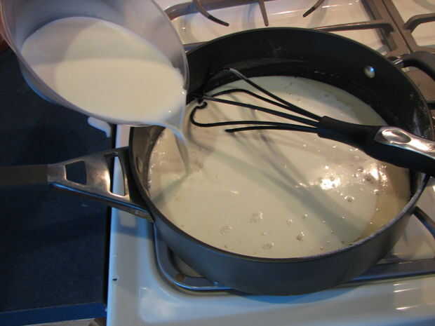 Desea que esta lisa y completamente incorporar todos los ingredientes juntos. Si añades la leche demasiado rápido, se salpica alrededor y ser más difíciles de combinar.