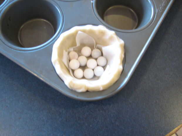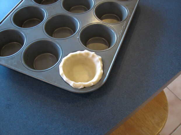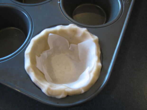 Presione suavemente el círculo de masa en molde de cupcake. No hay necesidad de engrasar la sartén.