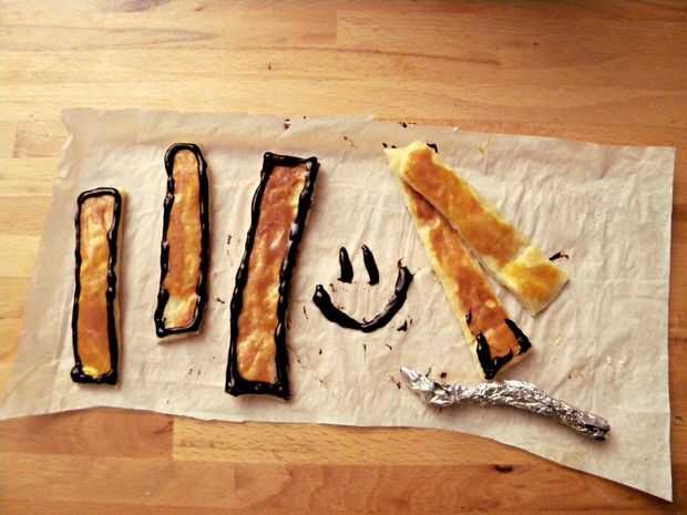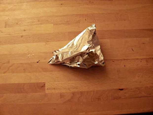 Doblar una hoja de papel de aluminio en forma de un cono para hacer una manga pastelera glaseado (había funcionamiento de hornear papel...)