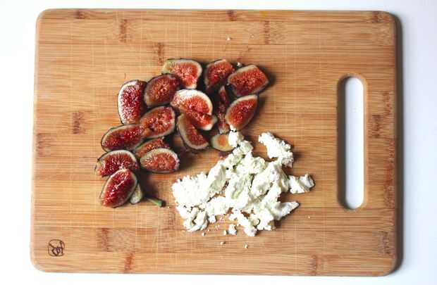 Luego proceda a cortar higos y queso de cabra en trozos poco considerables. Me gusta mantener los trozos un poco grueso.