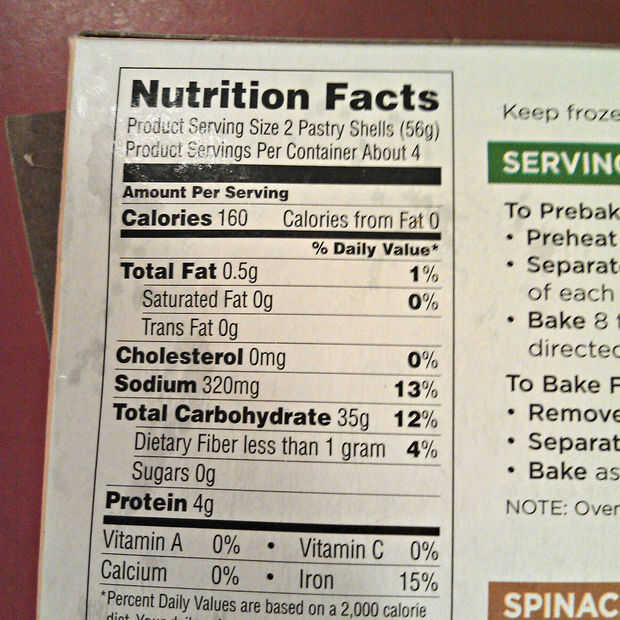 Como una persona viendo mi ingesta calórica, no pude resistir añadir un poco de matemáticas pastel a esta receta. Miré en los paneles de nutrición, que están ahora en la mayoría de los alimentos. Mi paquete de Tartaleta premade, congelada me dijo que yo sería merendar 160 calorías de sólo la cáscara de la pastelería! Miró más de cerca a la etiqueta y dieron cuenta de que el tamaño de la porción dos granadas ácidas. Ya que yo solo estar comiendo una cáscara, mis calorías sería la mitad de 160 calorías y 80 calorías.