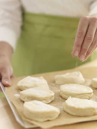 Separar la masa en porciones individuales y coloque en una placa para horno. Rociar las tapas con el azúcar restante y hornear según las instrucciones del envase.