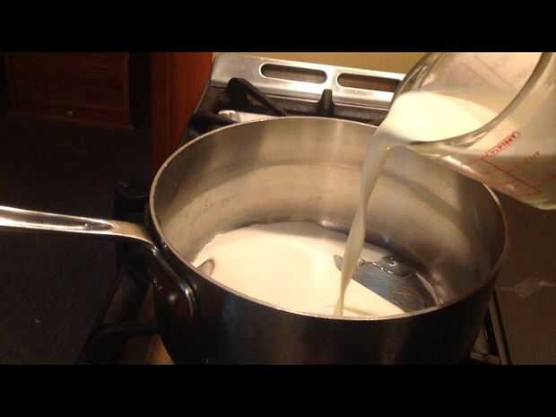 8-pobre crema de leche en la olla pequeña y dejar sentarse a fuego medio hasta que hierva