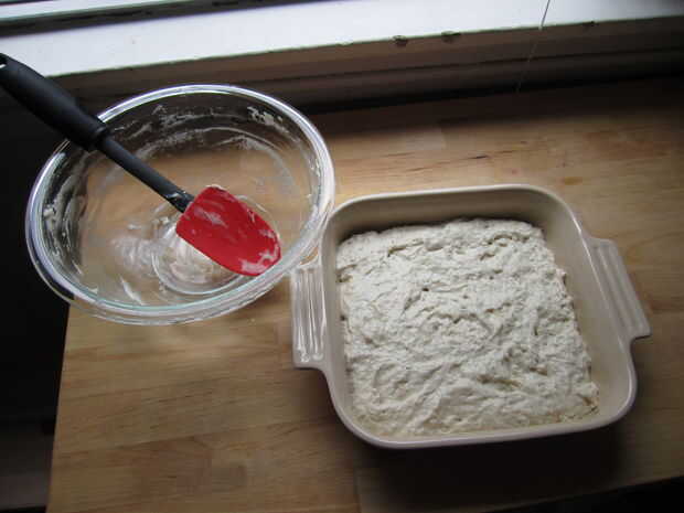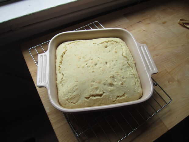 Vierta la masa de tarta en un molde cuadrado ligeramente engrasado de 8 pulgadas. Repartidos uniformemente y luego lo metes en el horno!