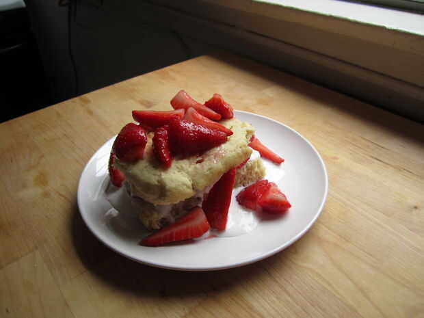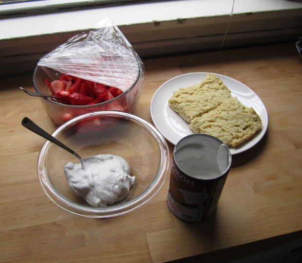 La cuchara algunas frutillas y su jugo en la parte inferior de la mitad de la torta corta y cubrir con la crema de coco. Luego poner la otra mitad de la tarta y cuchara sobre más fresas.