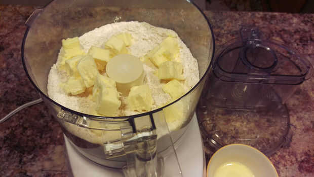- 2 barras (16 tbspn) de mantequilla fría, cortada en cubos