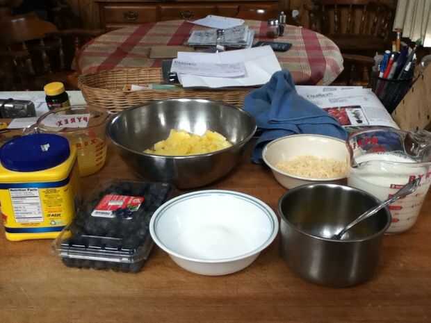 Yyyyyy una cantidad considerable de fruta: he utilizado una lata de piña y una pinta de arándanos, con las sobras de un bit cada uno y un poco de coco que tenía en mano.