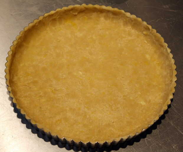 Estirar la masa fría y presione en el molde de tarta.