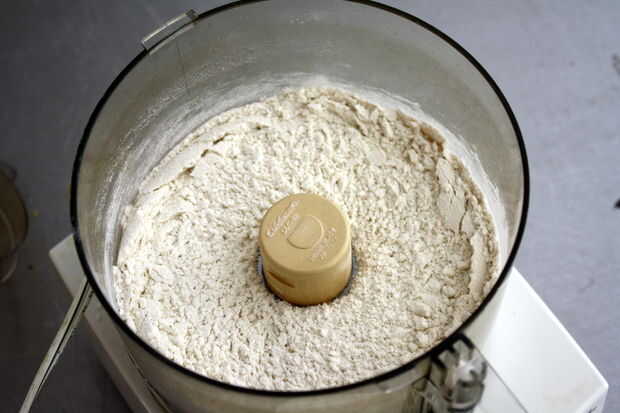 Combinar harina, azúcar y sal en el procesador de alimentos y el pulso para combinar.