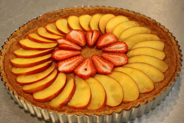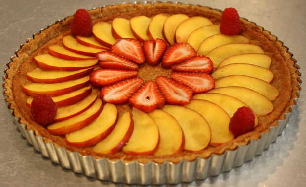 Tarta de frutas frescas con almendras costra Graham