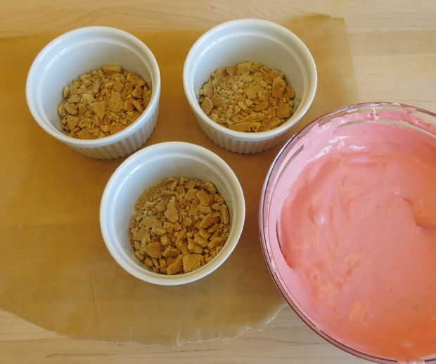 Como he dicho al principio, puede hacer dos pasteles o usted puede hacer poco ramekin dulces o un pastel y trata de molde! Cuando fui a hacerlo sólo tenía una tarta así que tomó unos recipientes y sólo desmenuzado galletas en ellos. (Si tienes el tiempo, puede utilizar una costra de galleta apropiada y empujar en la parte inferior de ellos). Viene con mi mezcla de gelatina batida extra. Son un divertido tratar y usted puede parte control si usted quiere.