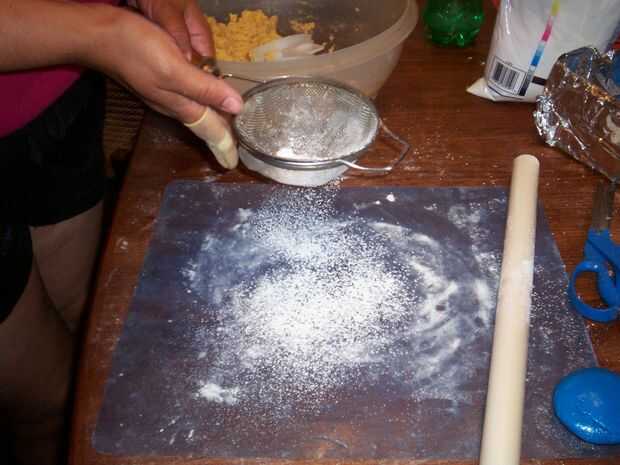 para este paso necesitarás tu pin de balanceo y mat, el fondant en polvo de azúcar, 3/4 taza taza, materia blanda torta.