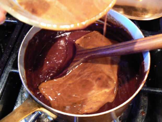 Mezcla de los huevos añadir a la mezcla de chocolate y revolver para incorporar bien. (aproximadamente un minuto.)