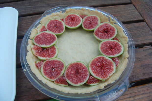 Ligeramente bate el huevo y batir en el 1/2 taza de crema, la miel, la vainilla y la harina. Verter esta mezcla uniformemente sobre los higos, luego hornear a 350° F por unos 50 a 60 minutos, hasta que la crema esté firme y oro marrón.