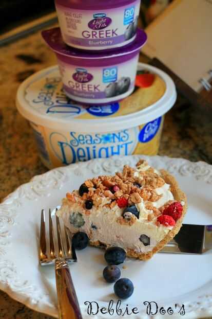 Toma tus dos envases de yogur y medio envase de cool whip y mezclar bien en un bol. Añades esta combinación a una corteza de galleta ya horneados.