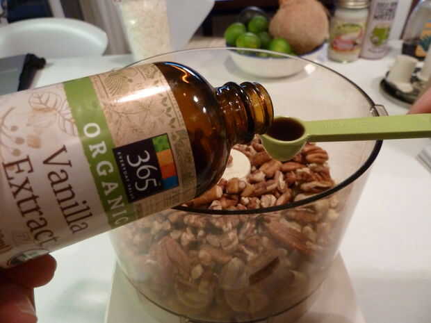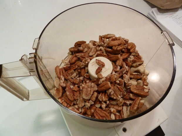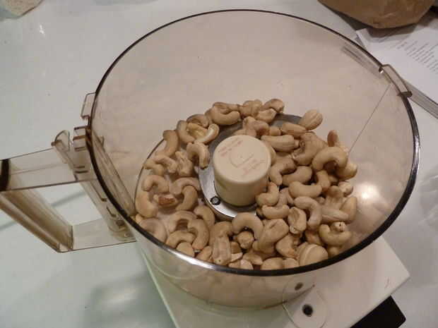 1. Mezcle las castañas de cajú, nuez, vainilla y sal en el Cuisinart hasta que se forma una mezcla perder (ver imagen).