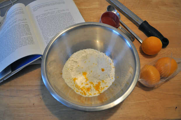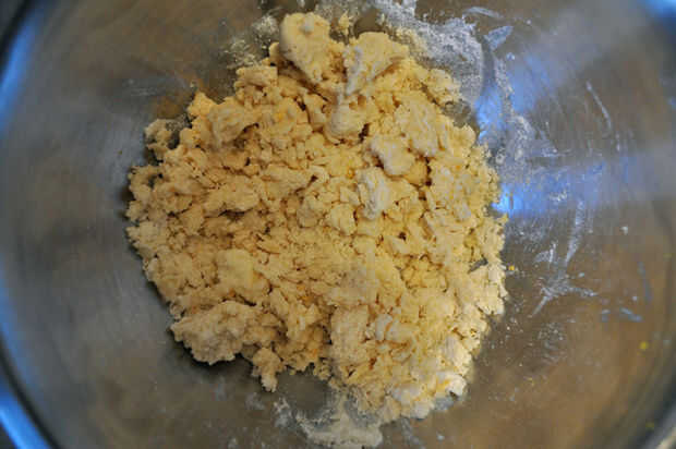 1. mezclar harina, azúcar, sal y limón cáscara en un tazón mediano tamaño. () Si se utiliza sal mantequilla, omite la sal.)
