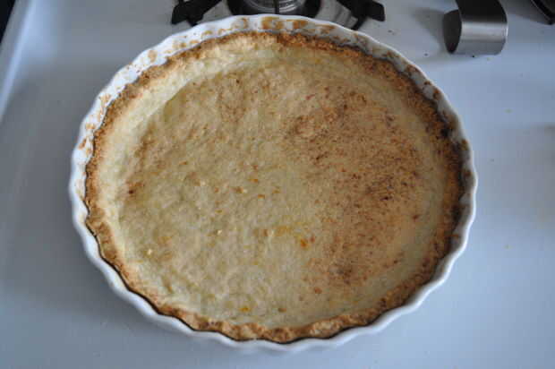 2. Hornee la corteza durante unos 25 minutos - girando la tarta una vez medio camino - hasta que la corteza es ligeramente dorado y cocido al horno a través de todo el camino. (No necesita llenar la concha con frijoles antes de hornear, esta masa no encoge mucho.)