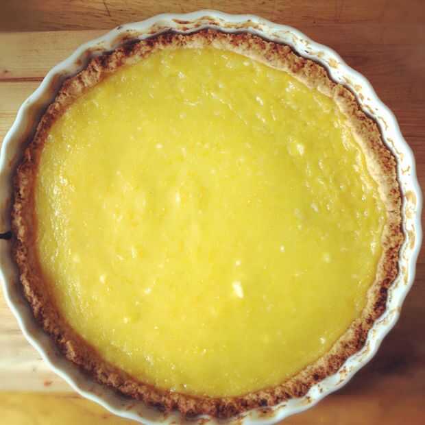 2. Llene el ligeramente frío, precocido corteza con el relleno y hornear durante 30-35 minutos o hasta que la parte superior está moteada con manchas marrones oscuras y el relleno ha soplado un poco. Sacar del horno y enfriar sobre una rejilla en la olla. También puede hornear la tarta apenas el tiempo suficiente para establecer el relleno, unos 15-20 minutos. Esto hará que una tarta suave y brillante.