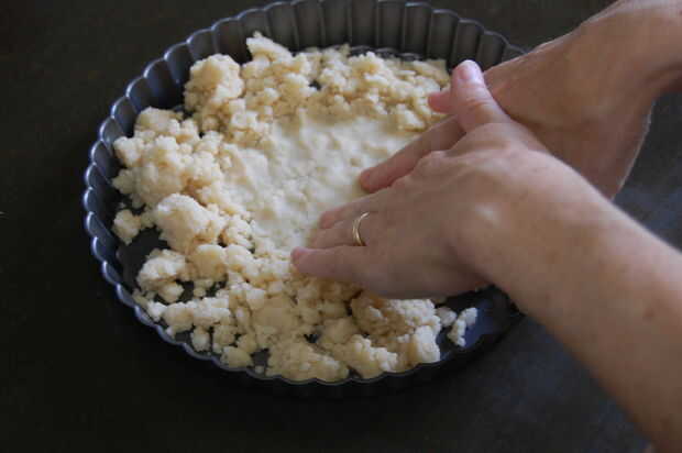 Coloque en el centro del molde y presione con los dedos lo más uniformemente posible en el fondo y los lados de la cacerola